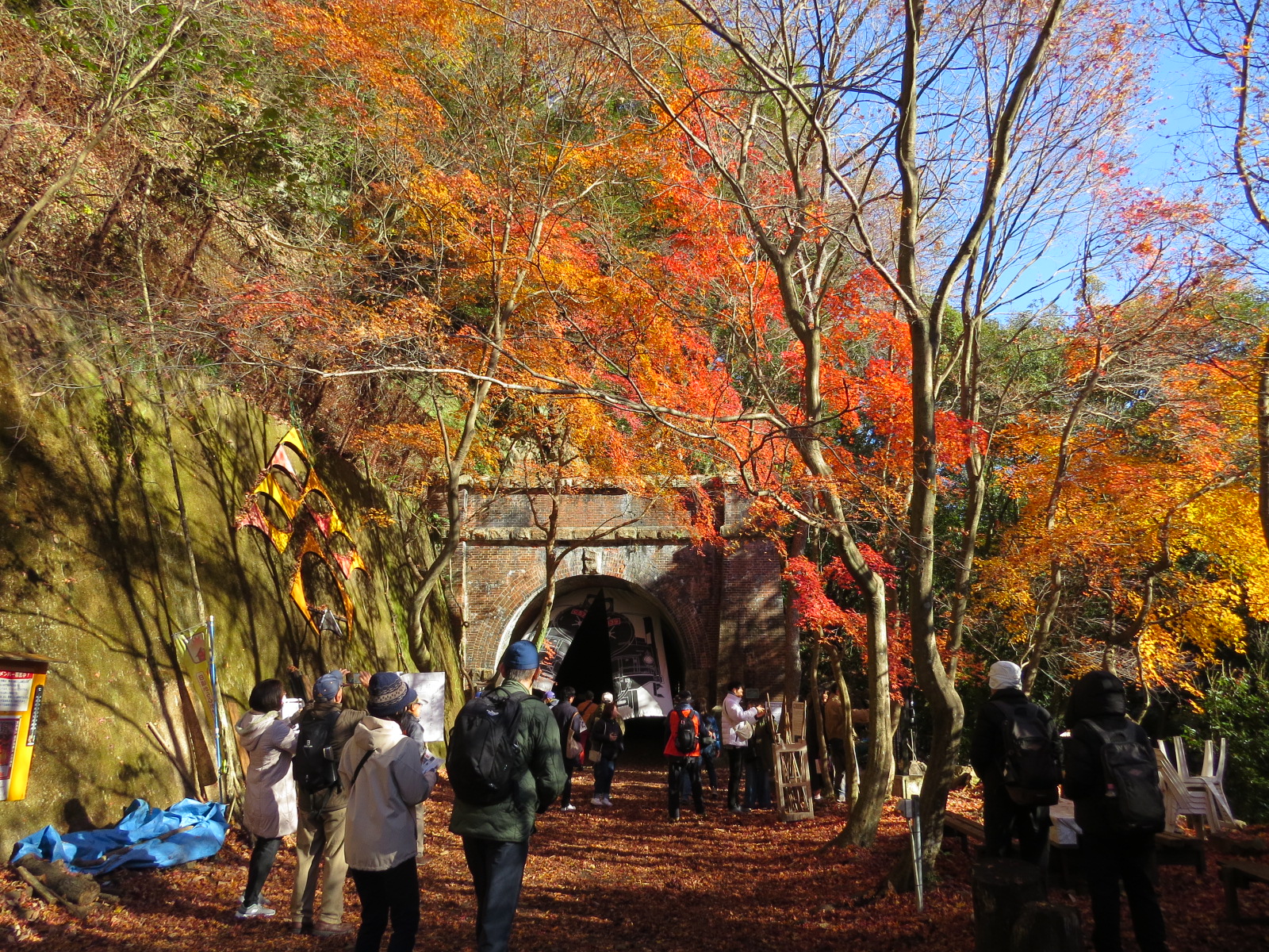 廃線めぐりファンとしては、必見のトンネル群で、現在NPO法人愛岐トンネル群保存再生委員会が年に数回公開していて常時は観ることはできず、今回紅葉シーズンとして昨日の12/7までが公開時期でした。