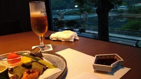 宿泊は錦帯橋の目の前、岩国国際観光ホテル。露天風呂良し、錦帯橋を眺めながらの会席料理は絶品でした。