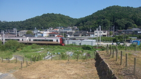国道1号線を挟んで向こうに「名鉄の舞木検査場」この建物の中に往年の名車「パノラマカー」が保管されています!